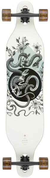 Az Arbor Axis 40" Bamboo egy igazán kiegyensúlyozott longboard, amelyet városi guruláshoz, laza ingázáshoz és kezdő lejtőzéshez terveztek. Snowboard ihlette drop-through kialakítása alacsony súlypontot biztosít, így nemcsak stabilabb, de kevésbé fárasztó a használata hosszabb távokon is. A 40 colos hossz és a 30,5 colos tengelytáv sima, kontrollált mozgást eredményez, még nagyobb sebességnél is. A lap 7 réteg fenntartható kanadai juharból és egy réteg bambuszból készül, amely nemcsak vizuálisan elegáns, de rendkívül rugalmas is. A természetes bambusz erezete gyönyörűen látszik a felső oldalon, míg az alsó rész El Rose művészi grafikáját viseli, amely egyedi karaktert ad a deszkának. A 180 mm-es Paris Reverse függők könnyed fordulásokat és precíz irányítást biztosítanak. Az Arbor Easyrider Outlook kerekek (69 mm / 78A) carvingra és sima cirkálásra készültek: a puha Venice Formula gumi jól tapad és elnyeli a rázkódásokat, míg a 44 mm-es érintkezési felület stabilitást nyújt. A részletekre is odafigyeltek: újrahasznosított üvegporral érdesített griptape, ABEC 7 csapágyak távtartóval – minden adott egy jól kiegyensúlyozott, minőségi élményhez. Ha olyan longboardot keresel, amely stílusban és teljesítményben is a felső kategóriát képviseli, az Arbor Axis 40" Bamboo ideális társad lesz a városban és azon túl is.