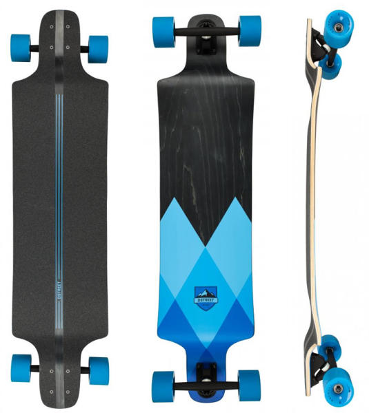 A Geo geometriai designja ugyanolyan letisztult, mint szélessége, erőteljes felépítése.  Együtt a masszív és kitartó downhill/freeride összeállítás védjegyei. A drop down kialakítás alacsonyabbra engedi a súlypontot, hogy még nagy sebességeknél is bátran lehessen beleállni nagyobb kanyarokba. A sebesség és az éles fordulatok szerelmesei könnyedén társra találhatnak ebben a longboardban! Technikai adatok: Lap: 8 réteg kanadai juhar Lap méretei: 101,6cm x 25,4cm (40 x 10) Griptape: standard, D Street logoval Felfüggesztés: 180mm széles Road Rider fordított kingpinnel Tengelytáv: 81,9cm Kerekek: high rebound, 70mm x 50mm, 80A Csapágyak: ABEC 7